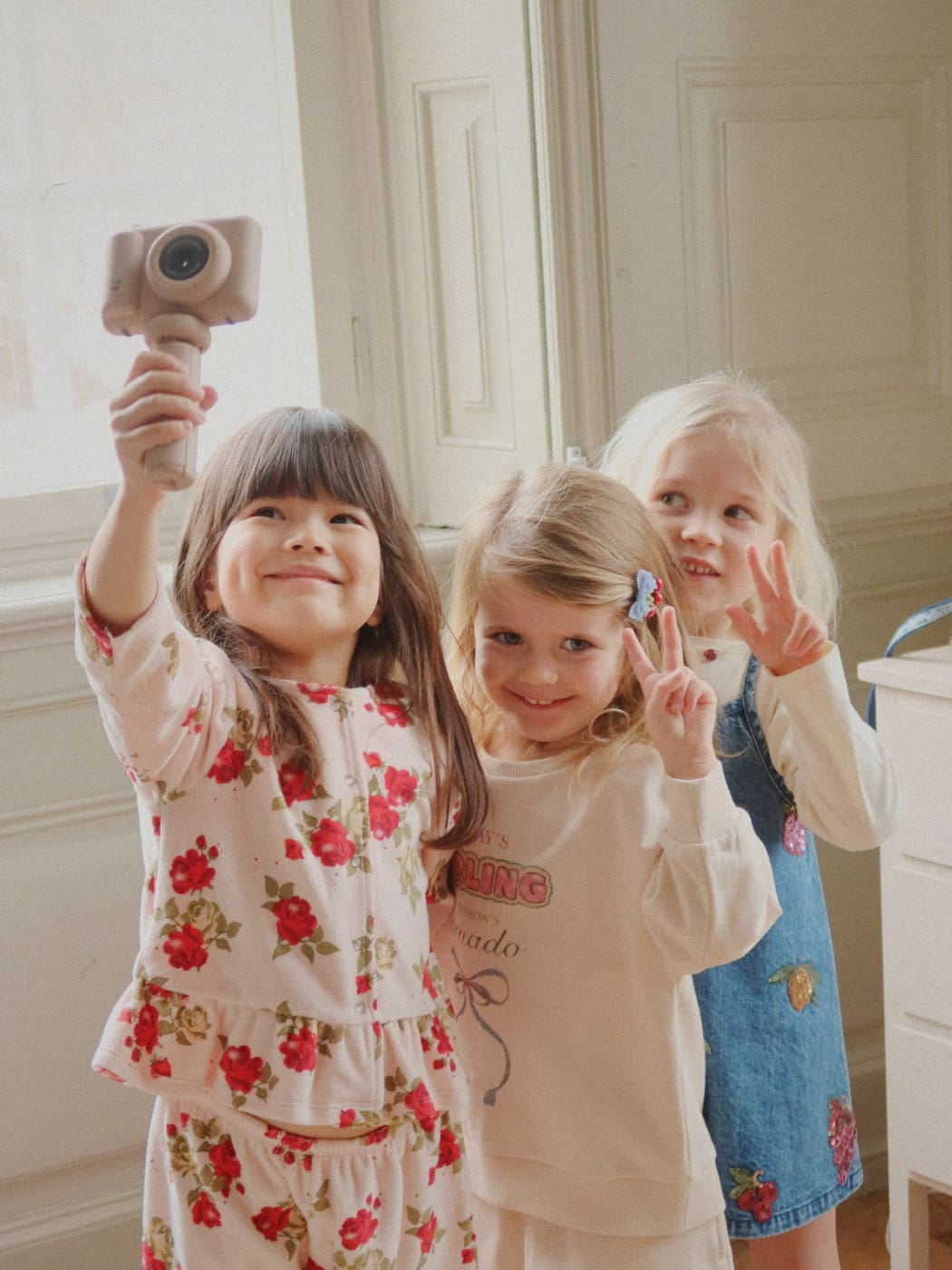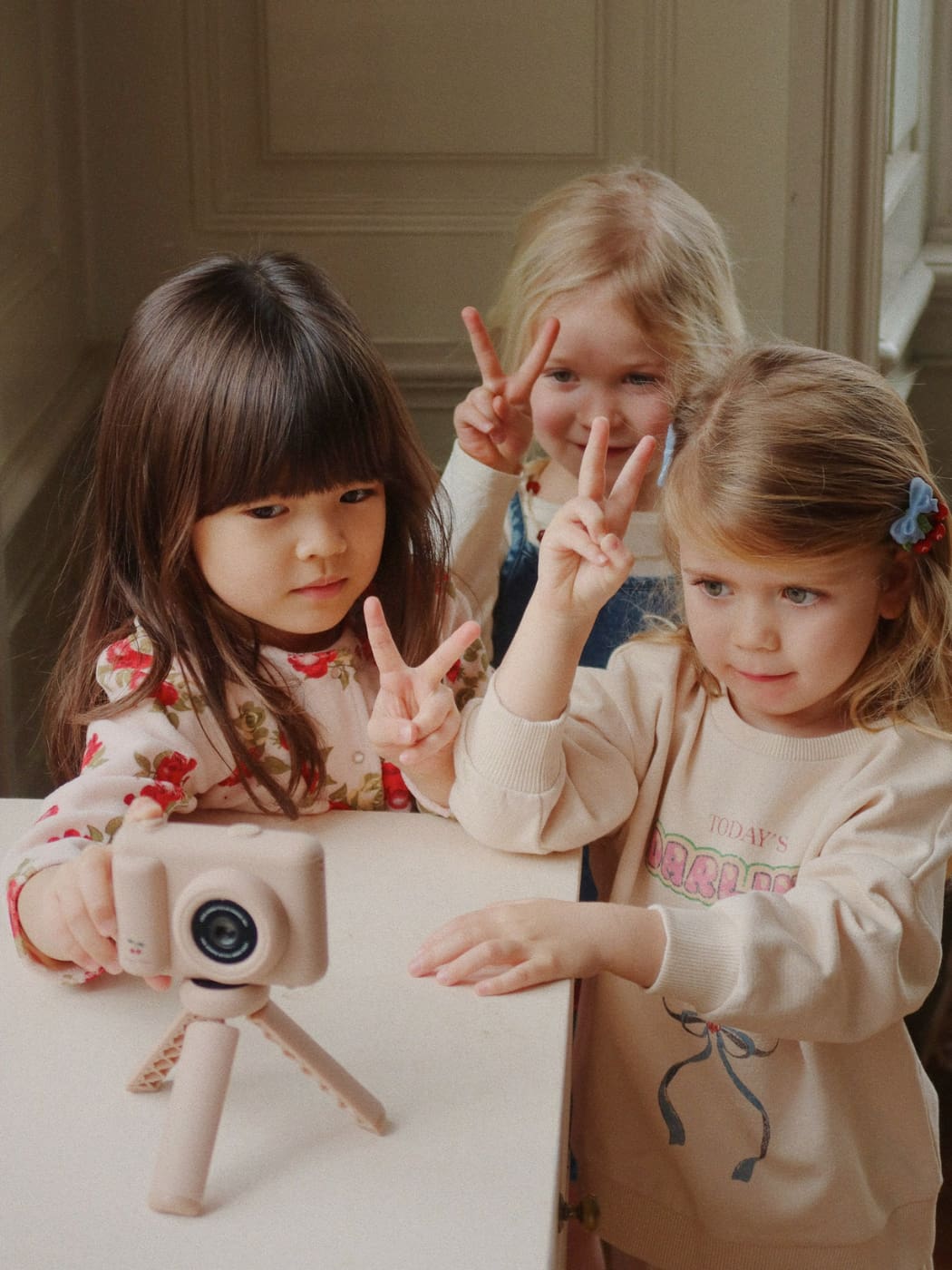 How adorable is this soft little camera for your budding photographer. Introduce your child to the amazing world of digital photography with a multifunctional camera with high-definition preview screen. This brand new product by Konges Slojd features a fun selfie function, video preset, and three pre-installed games, as well as a practical tabletop tripod that makes it easy to take selfies or record performances.