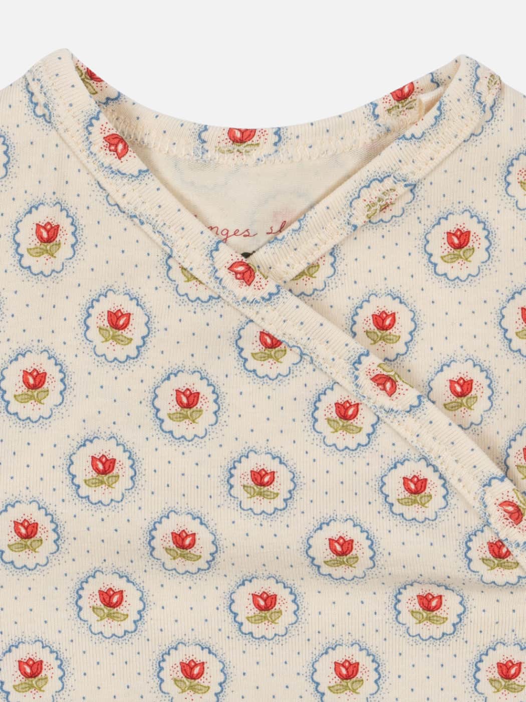 A soft long-sleeved wrap body for newborns made from organic cotton with a hint of stretch for a comfy fit. Features snap buttons along the sides and crotch that make it easy to dress your baby. A beautiful classic by Konges Slojd.