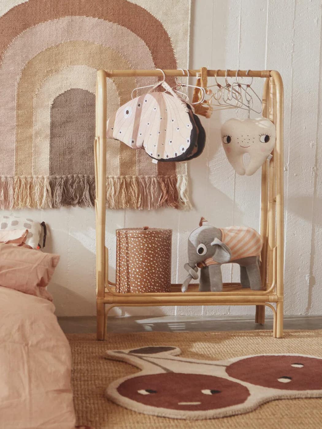 This adorable rug is shaped like a pair of twin cherries, with cute little friendly faces. Hand tufted from a beautiful mix of wool and cotton, this rug is soft to play on, perfect for a children's bedroom or playroom. We love these smaller, fun rugs next to our kids beds, so when they wake up, they have a soft spot to put their feet. But they also can be put anywhere to add fun and brighten up a room.